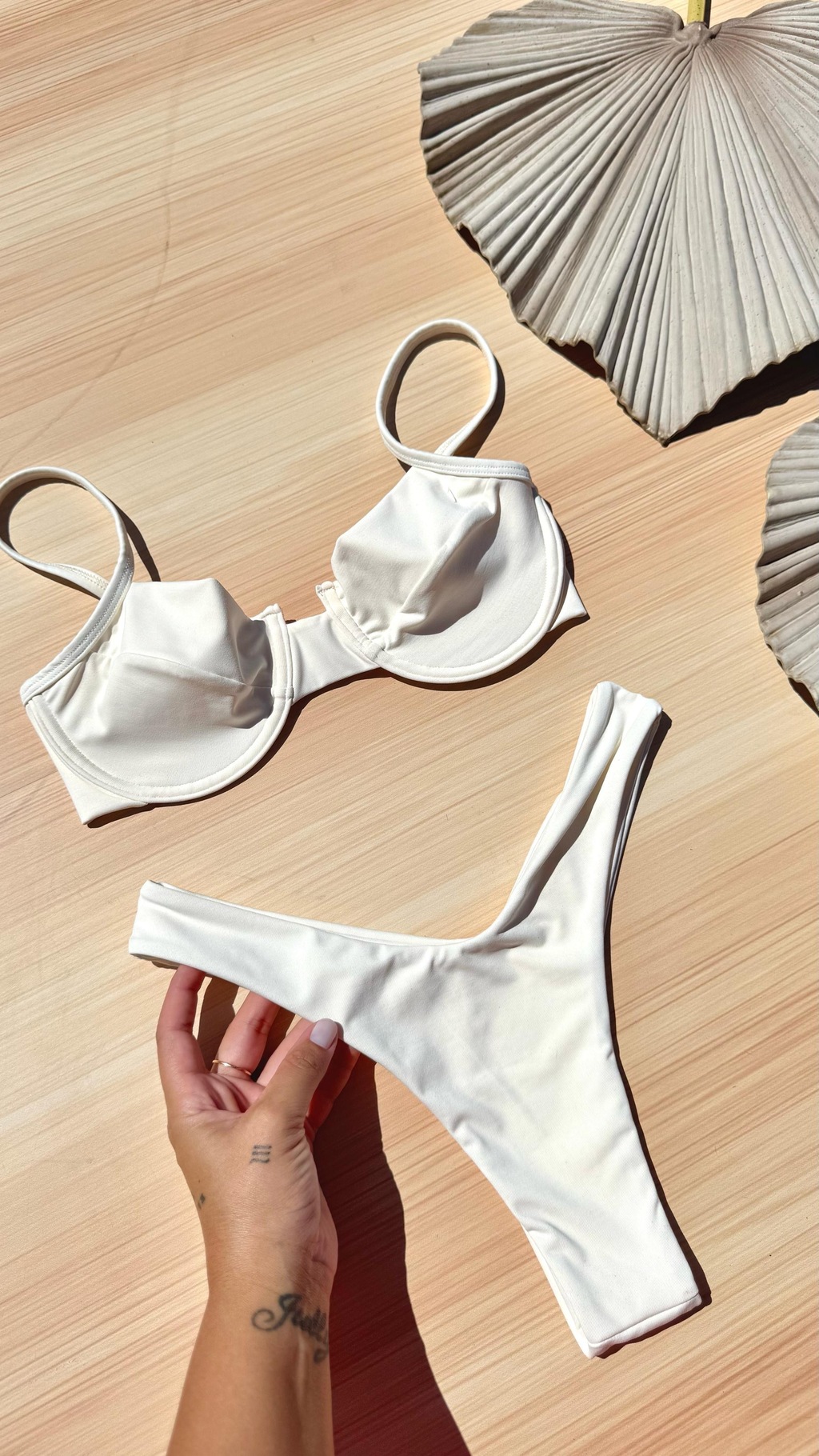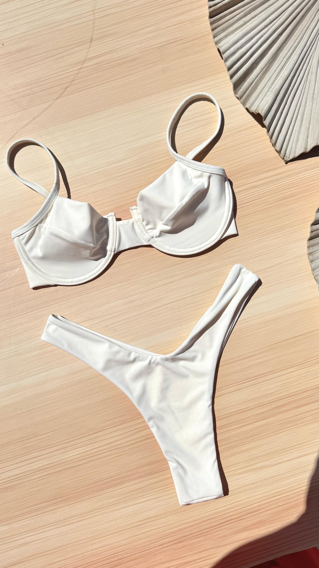 A calcinha asa delta completa o conjunto, oferecendo um caimento moderno e confortável, ideal para quem busca liberdade de movimento e elegância à beira-mar.